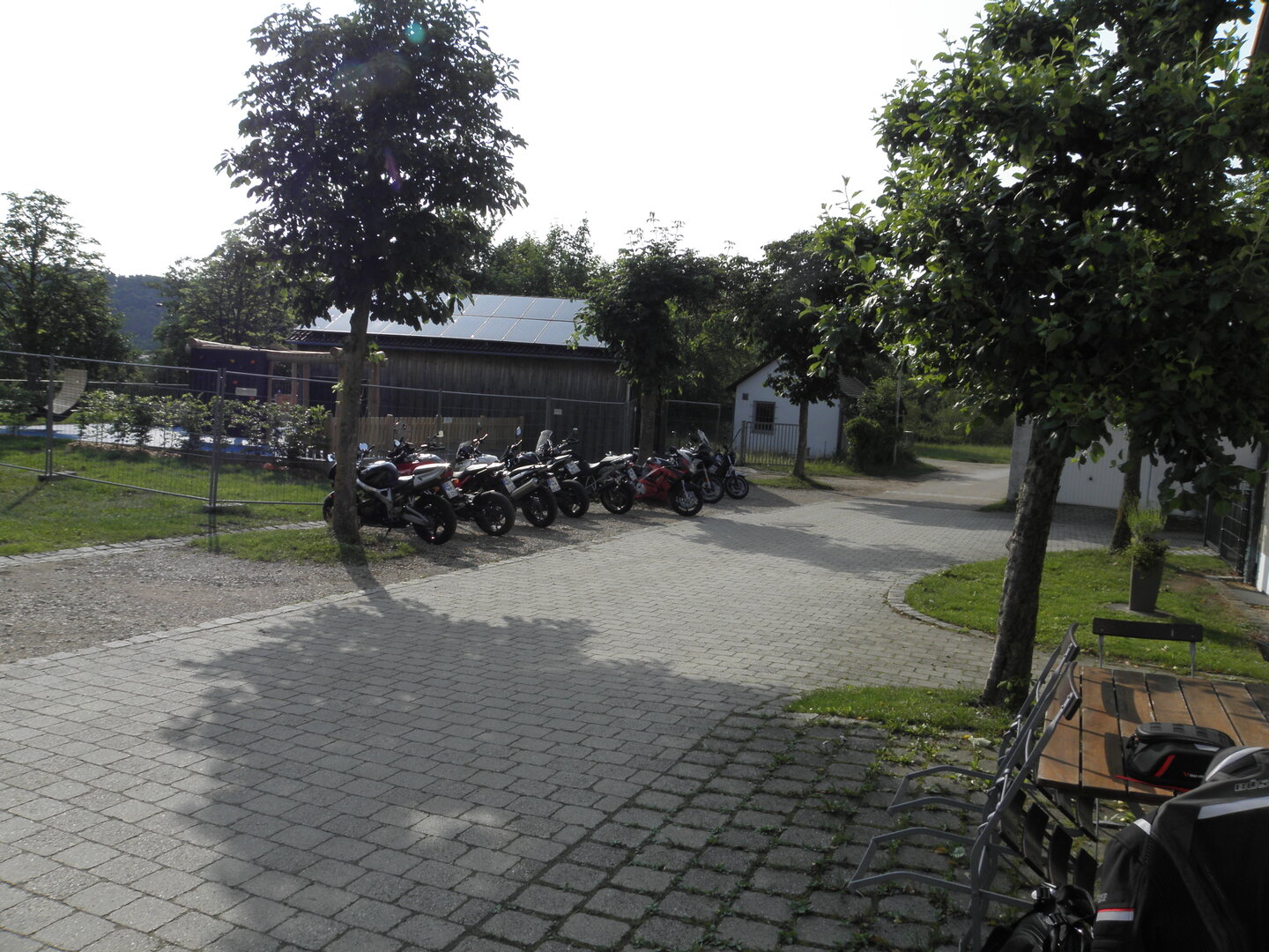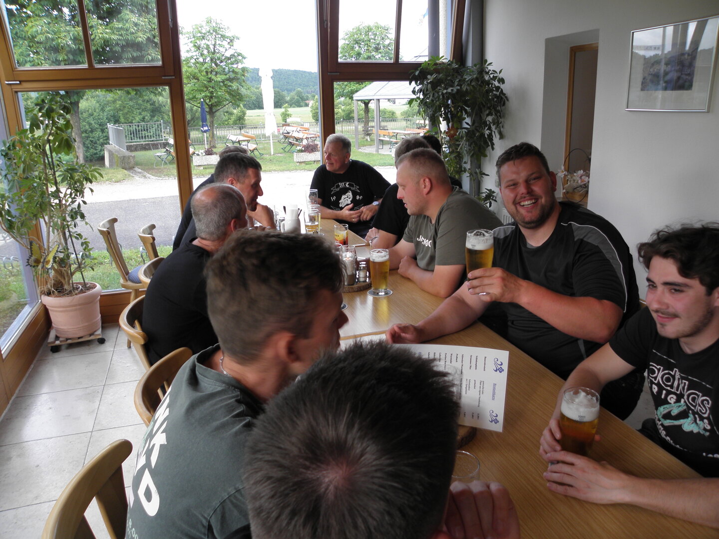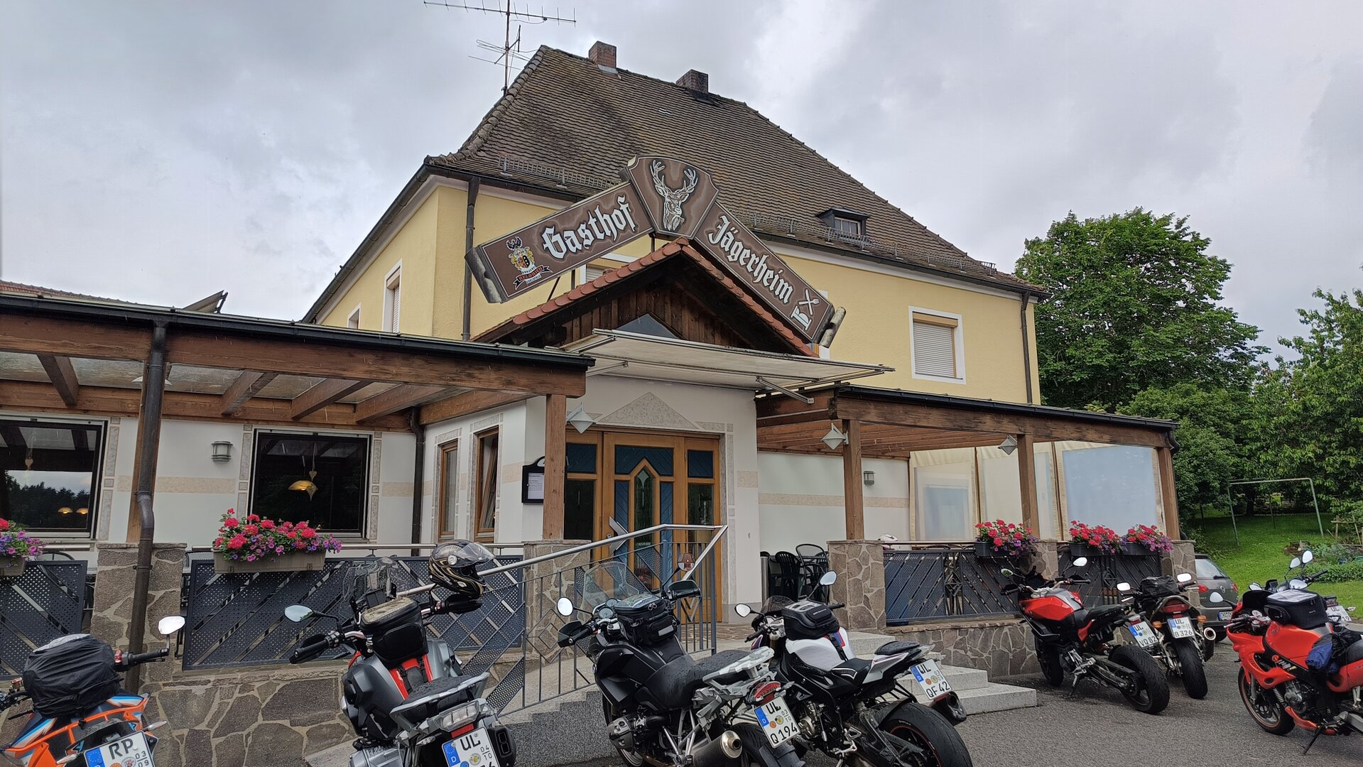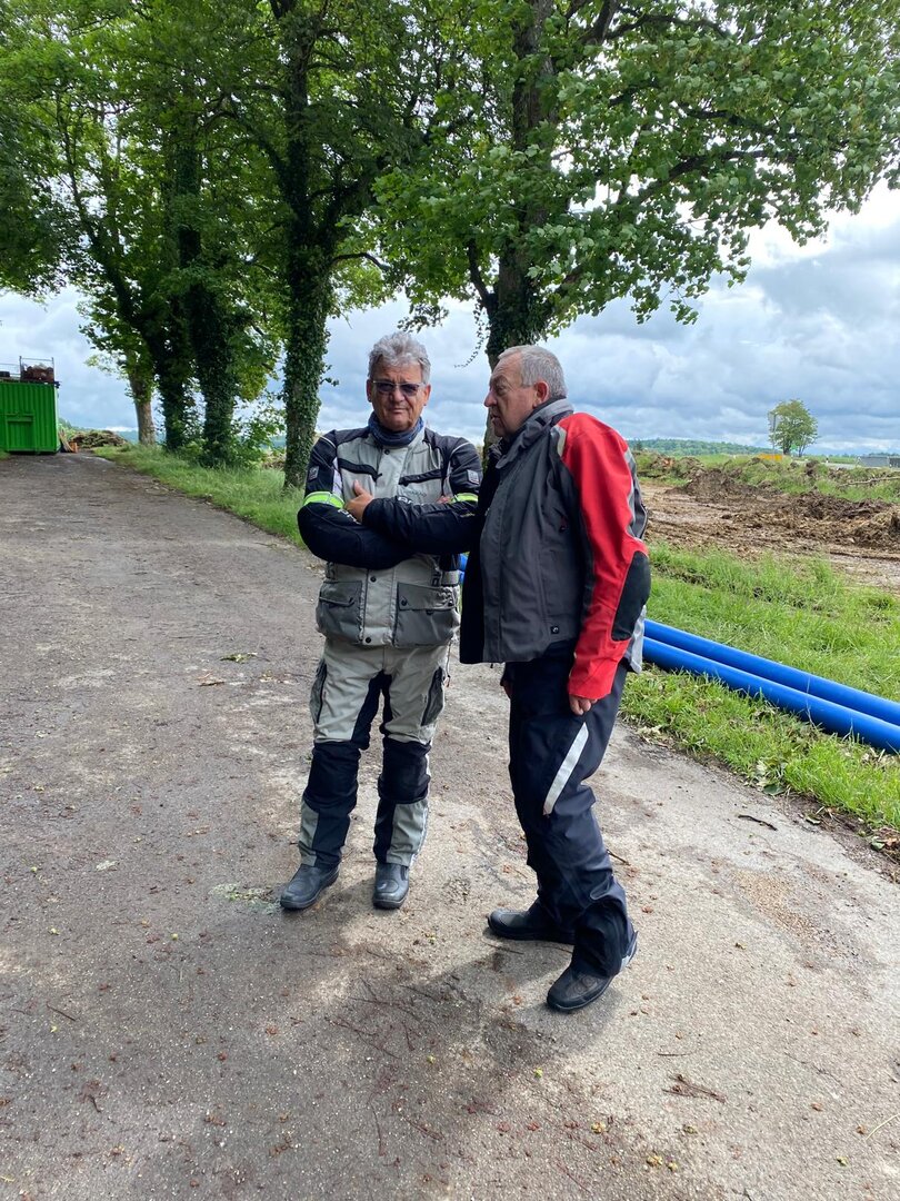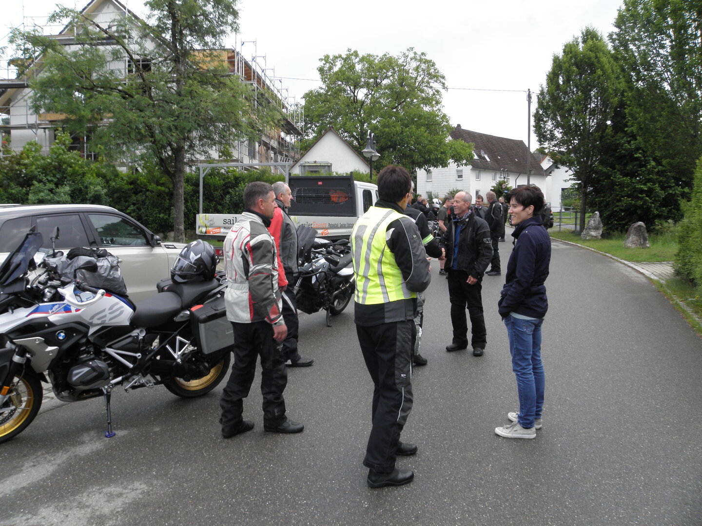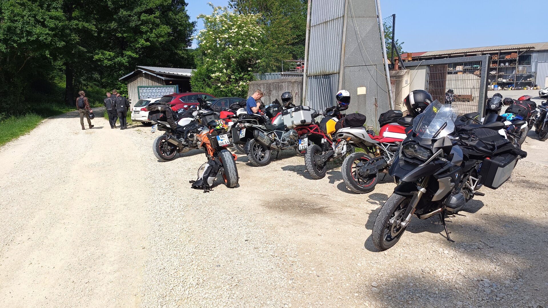 Am 7. Juni gings wieder los es stand die Pfingstausfahrt auf dem Programm. Ziel war dieses mal der Gasthof "Zu den drei Heiligen " in Dietfurt an der Altmühl. Bei durchwachsenem Wetter gings morgens mit 23 Motorräder los. Die Tour ging über Blaubeuren, Dornstadt, Beimerstetten, Heuchlingen, Hermaringen, Sachsenhausen, Dischingen, Amerdingen, Harburg, Flotzheim, nach Pappenheim wo getankt wurde. Dort fing es an zu regnen und die Strecke über Eichtätt, Kinding, Beilngries nach Griesstetten wurde im Regen absolviert. Zum Teil Nass angekommen wurden die Zimmer bezogen, warm geduscht und sich erst einmal ein kühles Blondes gegönnt. Nach einem tollen Essen wollten einige noch auf einFest in der Nähe und organisierte ein Großraumtaxi. Man staunte nicht schlecht als statt dem Taxi ein Reisebus ankam. Mit dem fuhren einige aufs Fest, das ältere Semester blieb im Gasthof und lies es dort ausklingen. Nach reichhaltigem Frühstück und abkühlung in der Altmühl ging es auf zu einer Rundtour Man fuhr über Beratzhausen, Burglengenfeld, Amberg. Kurz vor Amberg mussten wir zwecks Unwetter unterstehen. Von oben trocken gings weiter nach Hirschau, Hahnbach, Kalchsreuth, nach Pruihausen wo im Gasthof Jägerheim Mittag gemacht wurde. Nach gutem Essen fuhr man dann über Neuhaus an der Pegnitz Richtung Happurg. In der Mitte der Strecke wurden wir noch von dem Verkehrszug der Polizei angehalten, Fahrzeugkontrolle usw. stand auf dem Plan. Wir waren wahrscheinlich die einzigen Motorradfahrer an diesem Tag da sonst bei diesem Wetter keiner sein Bike herausholte. Nach einer halben Stunde ging wieder weiter nach Laaber, Mittersthal, Stauferbuch, zurück nach Griesstetten wo man den Abend bei Speis und Trank ausklingen lies. Einige machten noch einen Spaziergang zur Wahlfahrtskirche "zu den drei elend Heiligen". Gestärkt am morgen bei besserem Wetter gings zurück über Beilngries, Weißenburg in Bayern, Wassertrüdingen, Unterschneidheim, Oberkochen, Lonsee, Blaubeuren zurück ins Clubheim wo es noch Kaffee und Kuchen gab. Es waren mal wieder 3 tolle Tage bis nächstes Jahr.
