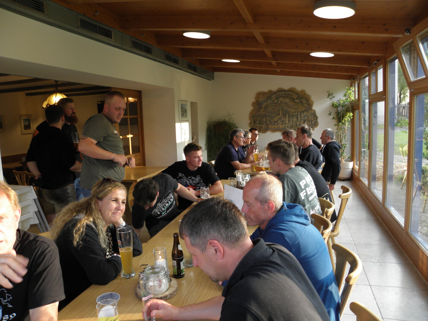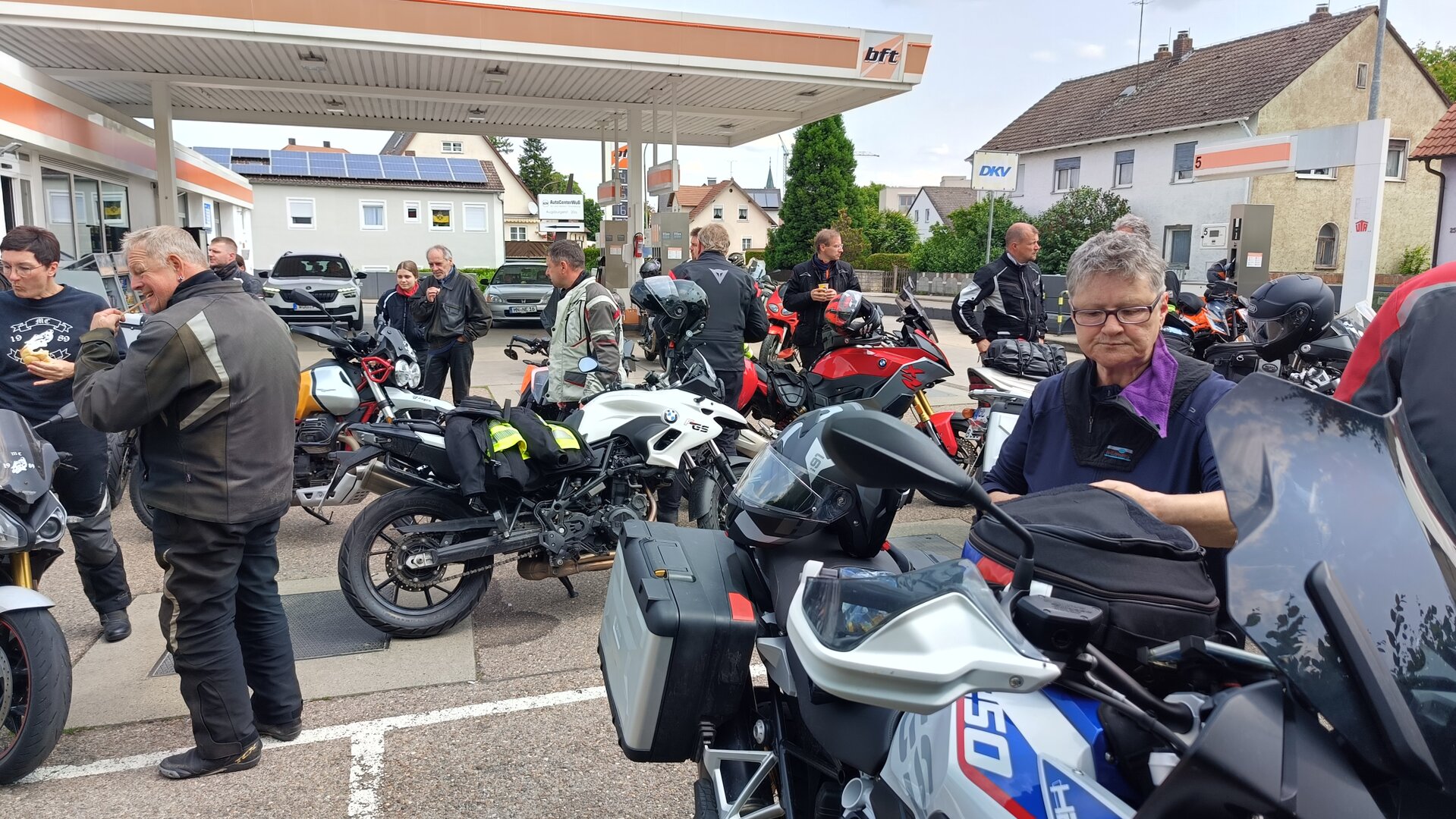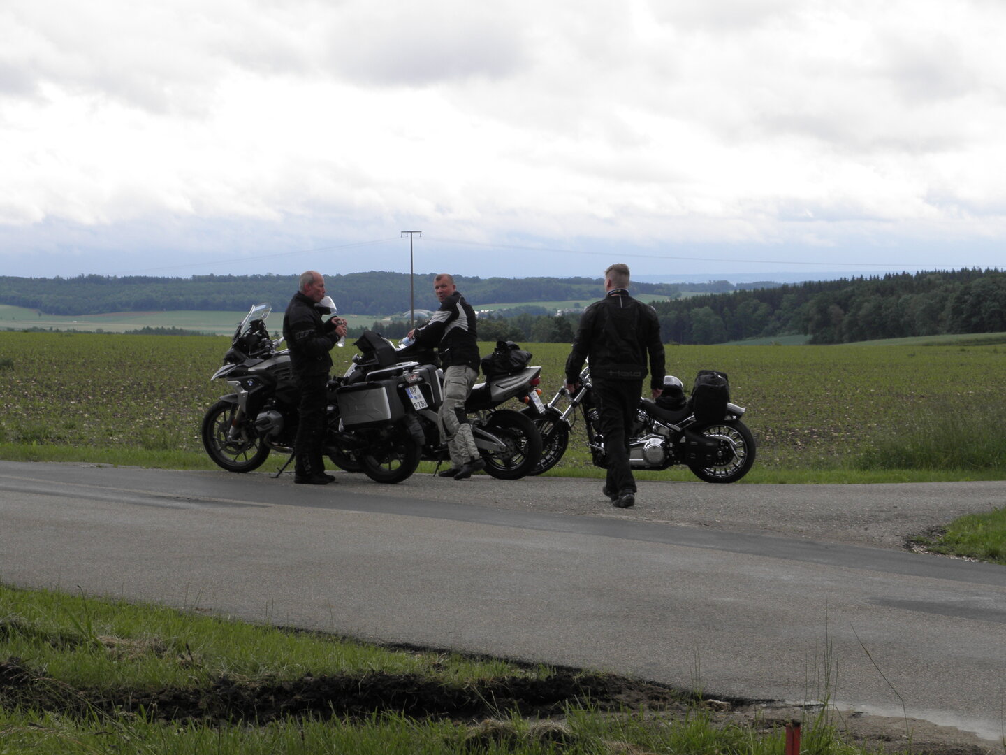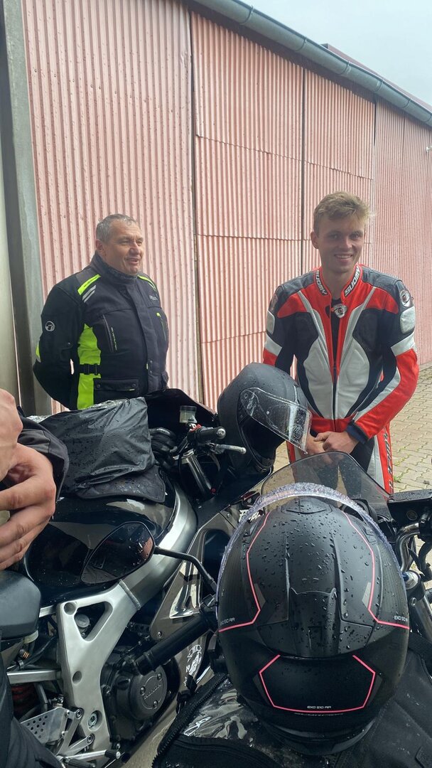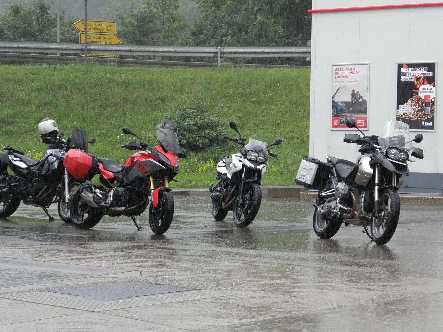 Am 7. Juni gings wieder los es stand die Pfingstausfahrt auf dem Programm. Ziel war dieses mal der Gasthof "Zu den drei Heiligen " in Dietfurt an der Altmühl. Bei durchwachsenem Wetter gings morgens mit 23 Motorräder los. Die Tour ging über Blaubeuren, Dornstadt, Beimerstetten, Heuchlingen, Hermaringen, Sachsenhausen, Dischingen, Amerdingen, Harburg, Flotzheim, nach Pappenheim wo getankt wurde. Dort fing es an zu regnen und die Strecke über Eichtätt, Kinding, Beilngries nach Griesstetten wurde im Regen absolviert. Zum Teil Nass angekommen wurden die Zimmer bezogen, warm geduscht und sich erst einmal ein kühles Blondes gegönnt. Nach einem tollen Essen wollten einige noch auf einFest in der Nähe und organisierte ein Großraumtaxi. Man staunte nicht schlecht als statt dem Taxi ein Reisebus ankam. Mit dem fuhren einige aufs Fest, das ältere Semester blieb im Gasthof und lies es dort ausklingen. Nach reichhaltigem Frühstück und abkühlung in der Altmühl ging es auf zu einer Rundtour Man fuhr über Beratzhausen, Burglengenfeld, Amberg. Kurz vor Amberg mussten wir zwecks Unwetter unterstehen. Von oben trocken gings weiter nach Hirschau, Hahnbach, Kalchsreuth, nach Pruihausen wo im Gasthof Jägerheim Mittag gemacht wurde. Nach gutem Essen fuhr man dann über Neuhaus an der Pegnitz Richtung Happurg. In der Mitte der Strecke wurden wir noch von dem Verkehrszug der Polizei angehalten, Fahrzeugkontrolle usw. stand auf dem Plan. Wir waren wahrscheinlich die einzigen Motorradfahrer an diesem Tag da sonst bei diesem Wetter keiner sein Bike herausholte. Nach einer halben Stunde ging wieder weiter nach Laaber, Mittersthal, Stauferbuch, zurück nach Griesstetten wo man den Abend bei Speis und Trank ausklingen lies. Einige machten noch einen Spaziergang zur Wahlfahrtskirche "zu den drei elend Heiligen". Gestärkt am morgen bei besserem Wetter gings zurück über Beilngries, Weißenburg in Bayern, Wassertrüdingen, Unterschneidheim, Oberkochen, Lonsee, Blaubeuren zurück ins Clubheim wo es noch Kaffee und Kuchen gab. Es waren mal wieder 3 tolle Tage bis nächstes Jahr.