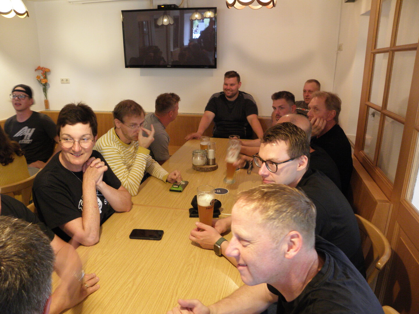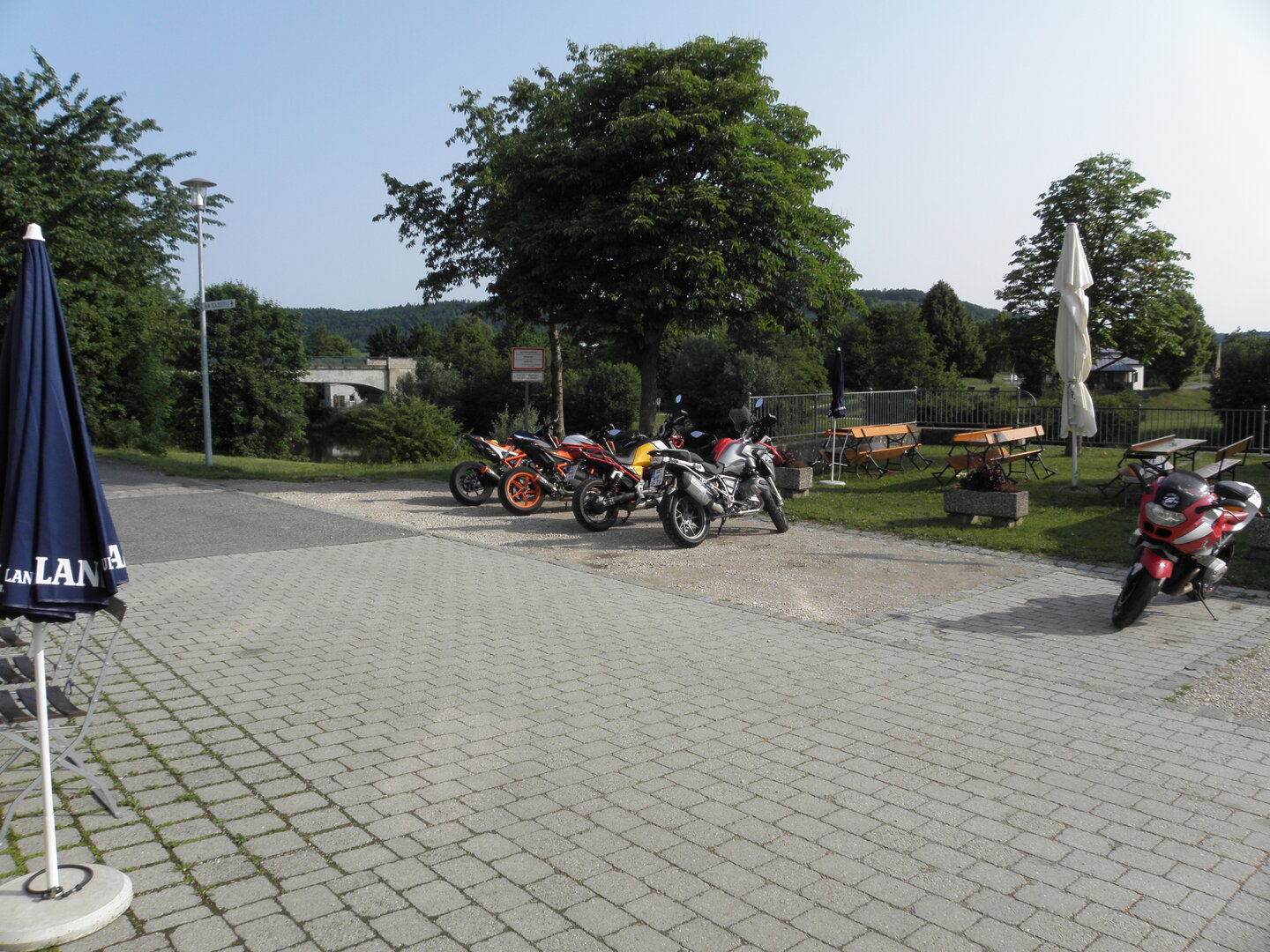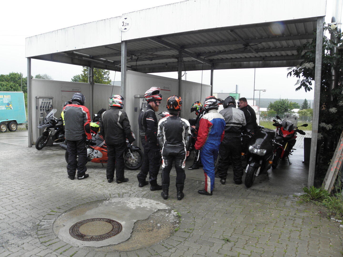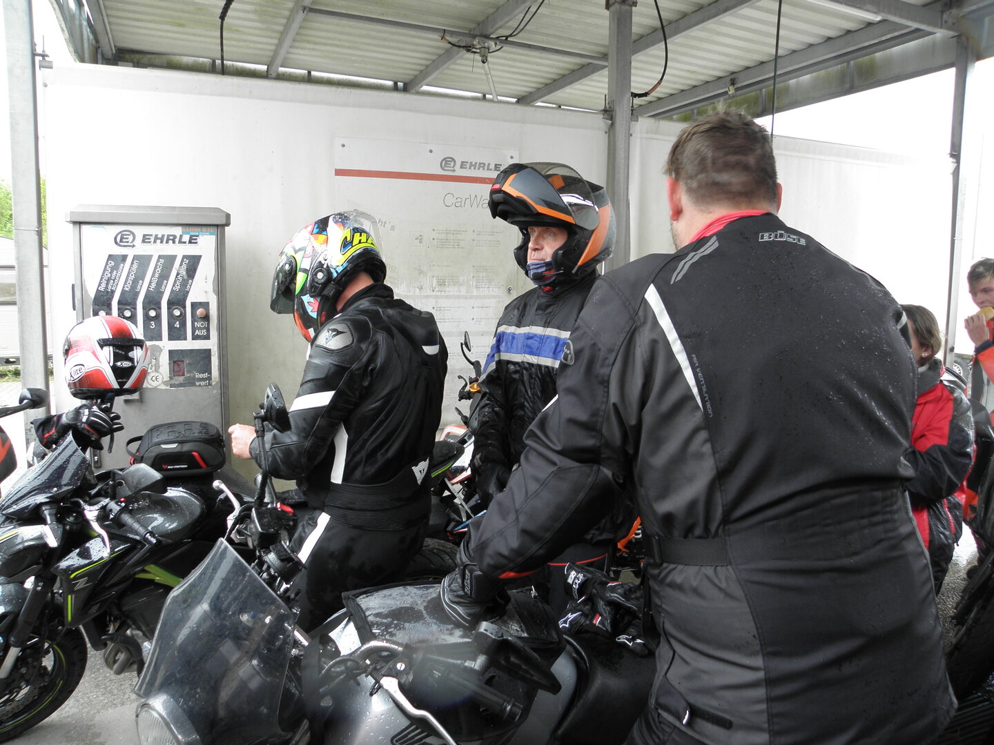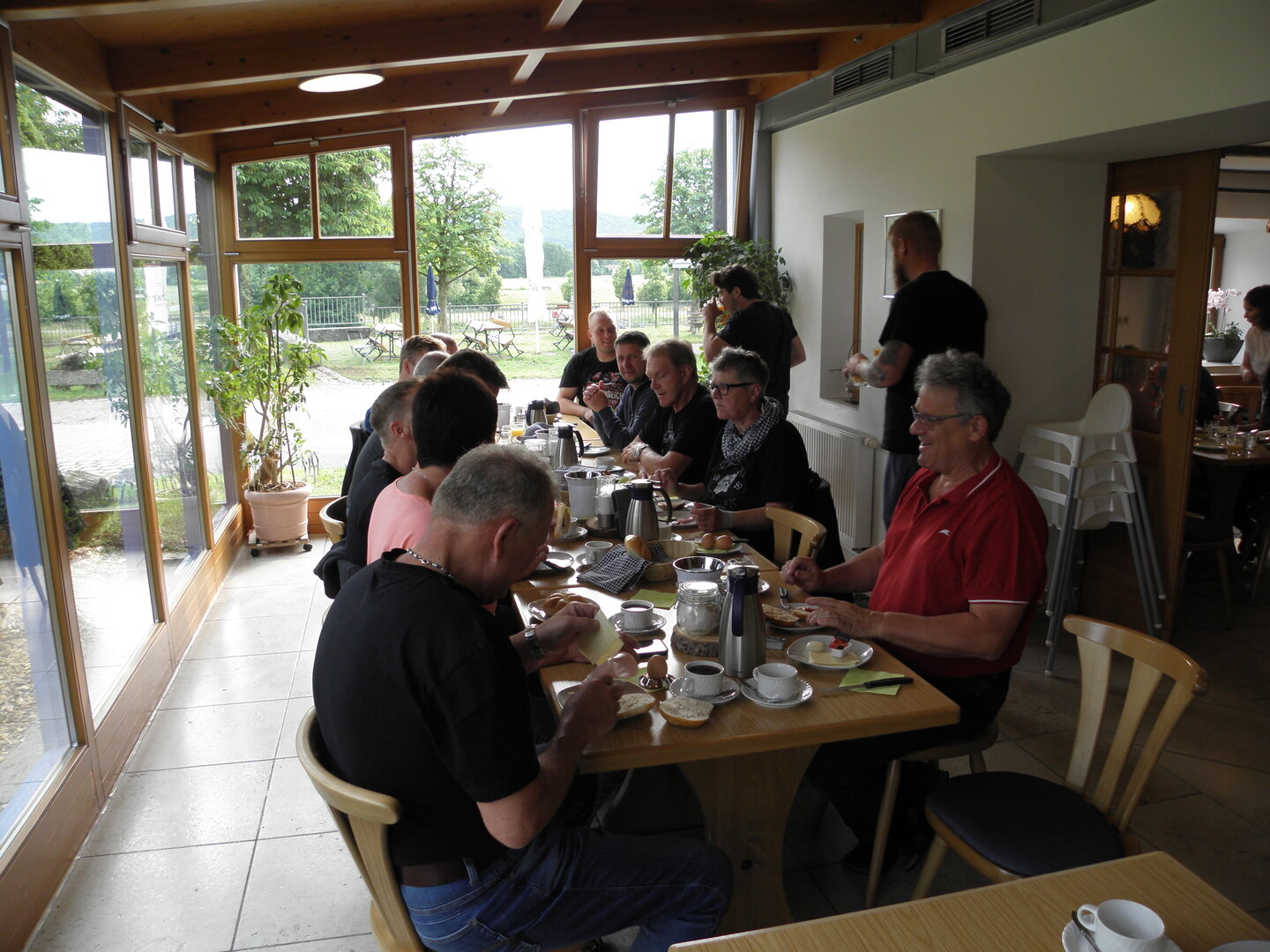 Am 7. Juni gings wieder los es stand die Pfingstausfahrt auf dem Programm. Ziel war dieses mal der Gasthof "Zu den drei Heiligen " in Dietfurt an der Altmühl. Bei durchwachsenem Wetter gings morgens mit 23 Motorräder los. Die Tour ging über Blaubeuren, Dornstadt, Beimerstetten, Heuchlingen, Hermaringen, Sachsenhausen, Dischingen, Amerdingen, Harburg, Flotzheim, nach Pappenheim wo getankt wurde. Dort fing es an zu regnen und die Strecke über Eichtätt, Kinding, Beilngries nach Griesstetten wurde im Regen absolviert. Zum Teil Nass angekommen wurden die Zimmer bezogen, warm geduscht und sich erst einmal ein kühles Blondes gegönnt. Nach einem tollen Essen wollten einige noch auf einFest in der Nähe und organisierte ein Großraumtaxi. Man staunte nicht schlecht als statt dem Taxi ein Reisebus ankam. Mit dem fuhren einige aufs Fest, das ältere Semester blieb im Gasthof und lies es dort ausklingen. Nach reichhaltigem Frühstück und abkühlung in der Altmühl ging es auf zu einer Rundtour Man fuhr über Beratzhausen, Burglengenfeld, Amberg. Kurz vor Amberg mussten wir zwecks Unwetter unterstehen. Von oben trocken gings weiter nach Hirschau, Hahnbach, Kalchsreuth, nach Pruihausen wo im Gasthof Jägerheim Mittag gemacht wurde. Nach gutem Essen fuhr man dann über Neuhaus an der Pegnitz Richtung Happurg. In der Mitte der Strecke wurden wir noch von dem Verkehrszug der Polizei angehalten, Fahrzeugkontrolle usw. stand auf dem Plan. Wir waren wahrscheinlich die einzigen Motorradfahrer an diesem Tag da sonst bei diesem Wetter keiner sein Bike herausholte. Nach einer halben Stunde ging wieder weiter nach Laaber, Mittersthal, Stauferbuch, zurück nach Griesstetten wo man den Abend bei Speis und Trank ausklingen lies. Einige machten noch einen Spaziergang zur Wahlfahrtskirche "zu den drei elend Heiligen". Gestärkt am morgen bei besserem Wetter gings zurück über Beilngries, Weißenburg in Bayern, Wassertrüdingen, Unterschneidheim, Oberkochen, Lonsee, Blaubeuren zurück ins Clubheim wo es noch Kaffee und Kuchen gab. Es waren mal wieder 3 tolle Tage bis nächstes Jahr.