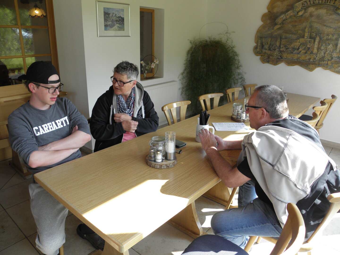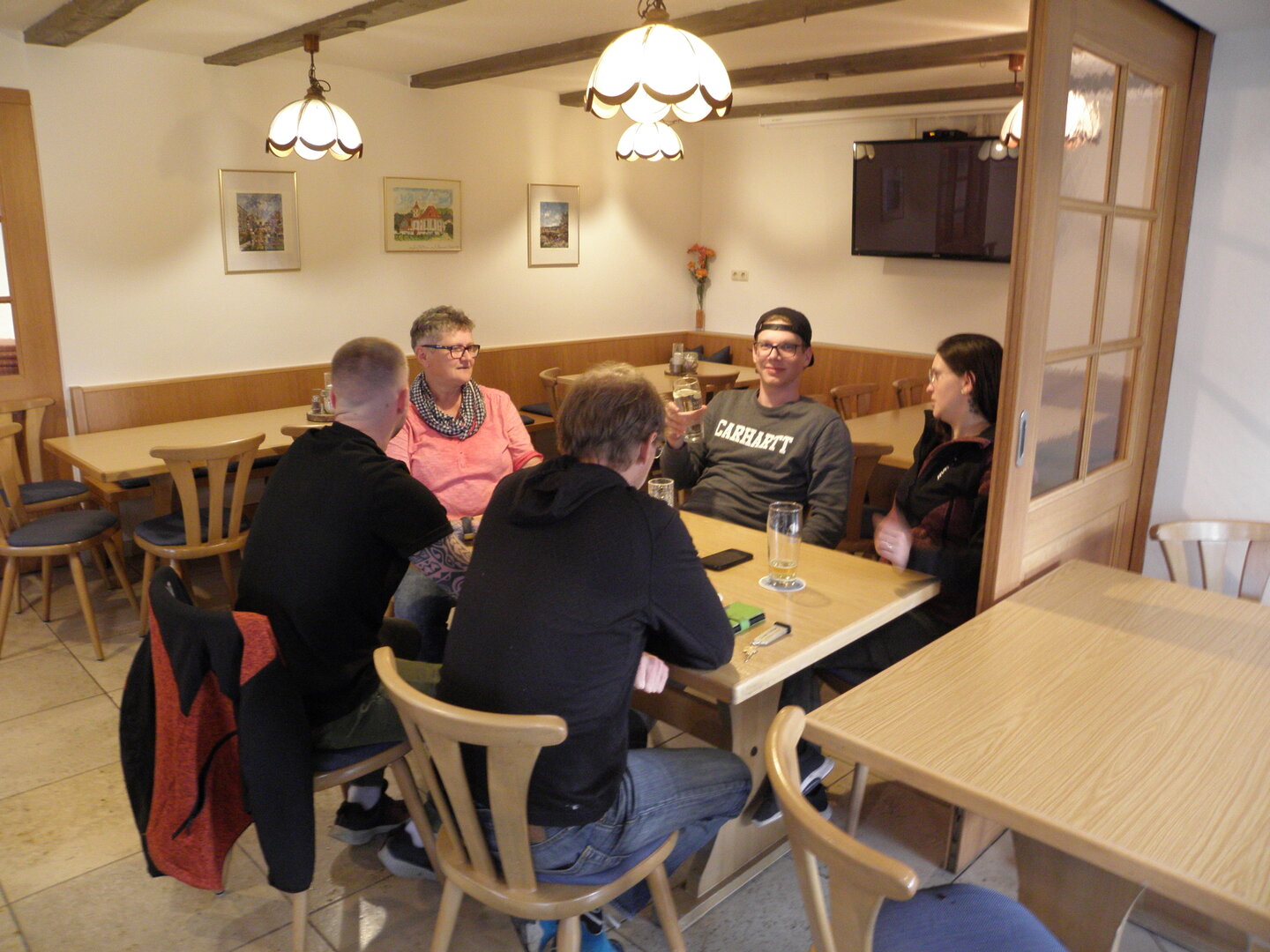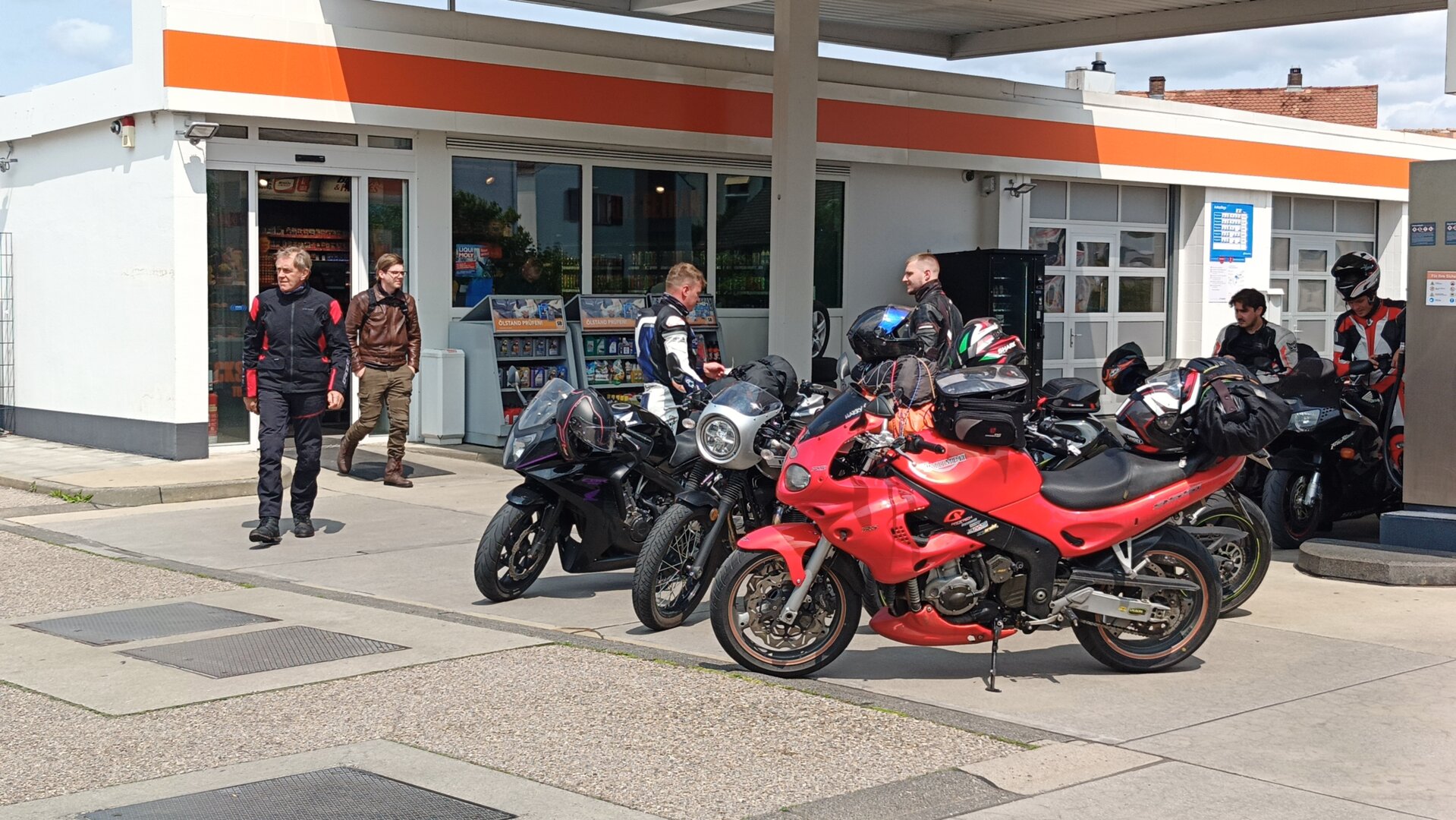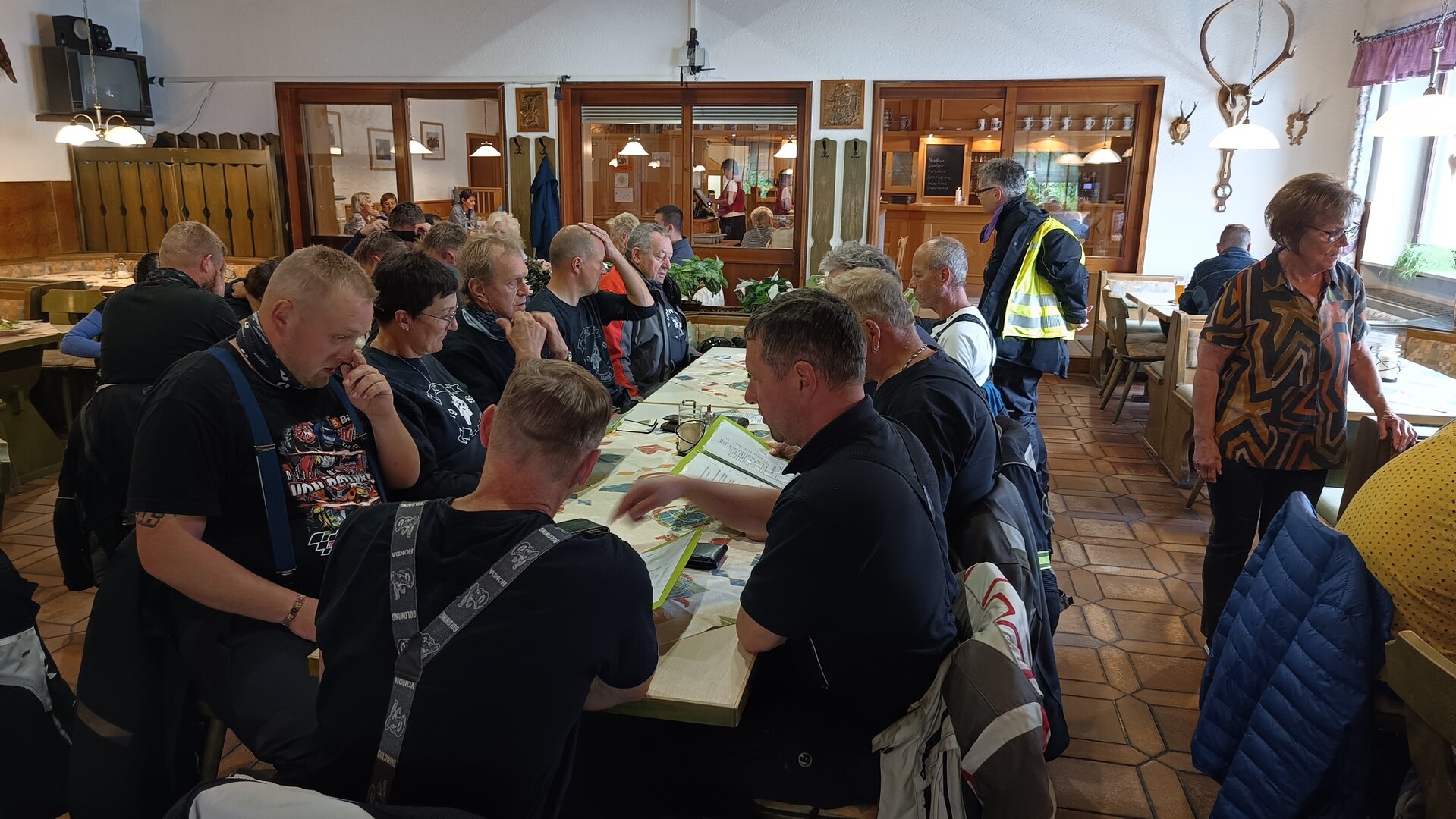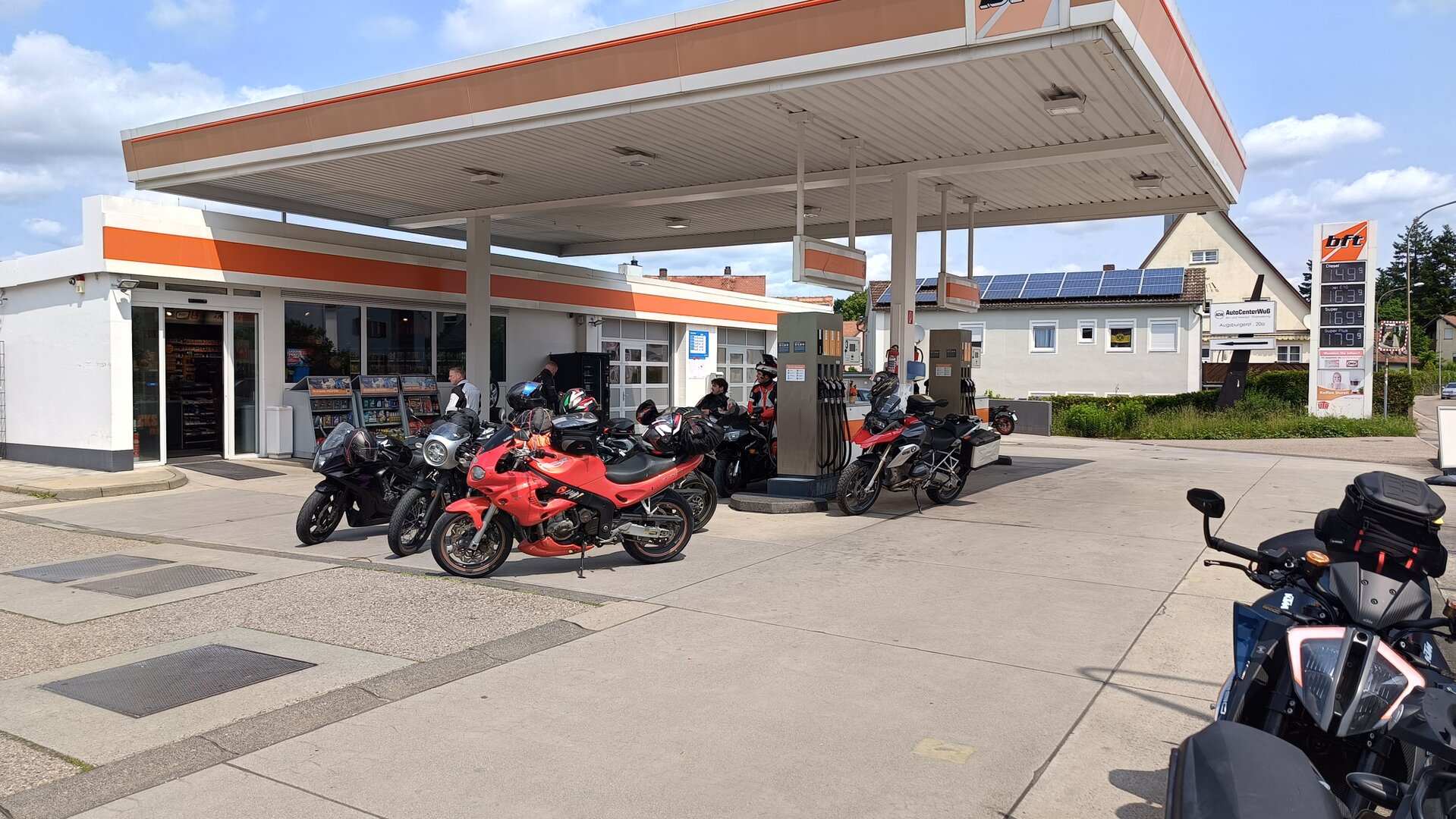 Am 7. Juni gings wieder los es stand die Pfingstausfahrt auf dem Programm. Ziel war dieses mal der Gasthof "Zu den drei Heiligen " in Dietfurt an der Altmühl. Bei durchwachsenem Wetter gings morgens mit 23 Motorräder los. Die Tour ging über Blaubeuren, Dornstadt, Beimerstetten, Heuchlingen, Hermaringen, Sachsenhausen, Dischingen, Amerdingen, Harburg, Flotzheim, nach Pappenheim wo getankt wurde. Dort fing es an zu regnen und die Strecke über Eichtätt, Kinding, Beilngries nach Griesstetten wurde im Regen absolviert. Zum Teil Nass angekommen wurden die Zimmer bezogen, warm geduscht und sich erst einmal ein kühles Blondes gegönnt. Nach einem tollen Essen wollten einige noch auf einFest in der Nähe und organisierte ein Großraumtaxi. Man staunte nicht schlecht als statt dem Taxi ein Reisebus ankam. Mit dem fuhren einige aufs Fest, das ältere Semester blieb im Gasthof und lies es dort ausklingen. Nach reichhaltigem Frühstück und abkühlung in der Altmühl ging es auf zu einer Rundtour Man fuhr über Beratzhausen, Burglengenfeld, Amberg. Kurz vor Amberg mussten wir zwecks Unwetter unterstehen. Von oben trocken gings weiter nach Hirschau, Hahnbach, Kalchsreuth, nach Pruihausen wo im Gasthof Jägerheim Mittag gemacht wurde. Nach gutem Essen fuhr man dann über Neuhaus an der Pegnitz Richtung Happurg. In der Mitte der Strecke wurden wir noch von dem Verkehrszug der Polizei angehalten, Fahrzeugkontrolle usw. stand auf dem Plan. Wir waren wahrscheinlich die einzigen Motorradfahrer an diesem Tag da sonst bei diesem Wetter keiner sein Bike herausholte. Nach einer halben Stunde ging wieder weiter nach Laaber, Mittersthal, Stauferbuch, zurück nach Griesstetten wo man den Abend bei Speis und Trank ausklingen lies. Einige machten noch einen Spaziergang zur Wahlfahrtskirche "zu den drei elend Heiligen". Gestärkt am morgen bei besserem Wetter gings zurück über Beilngries, Weißenburg in Bayern, Wassertrüdingen, Unterschneidheim, Oberkochen, Lonsee, Blaubeuren zurück ins Clubheim wo es noch Kaffee und Kuchen gab. Es waren mal wieder 3 tolle Tage bis nächstes Jahr.