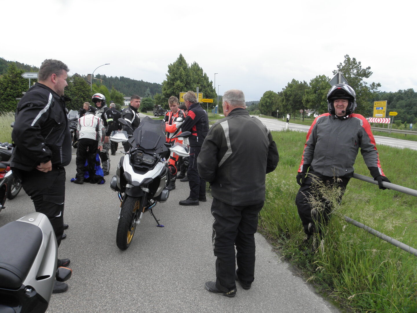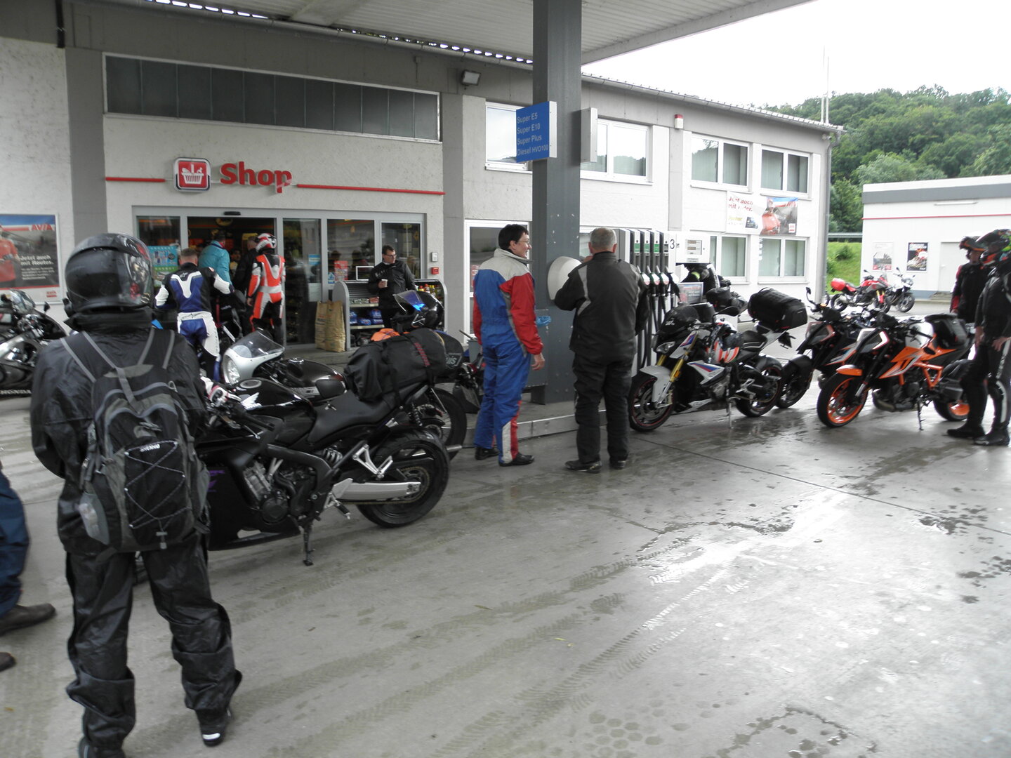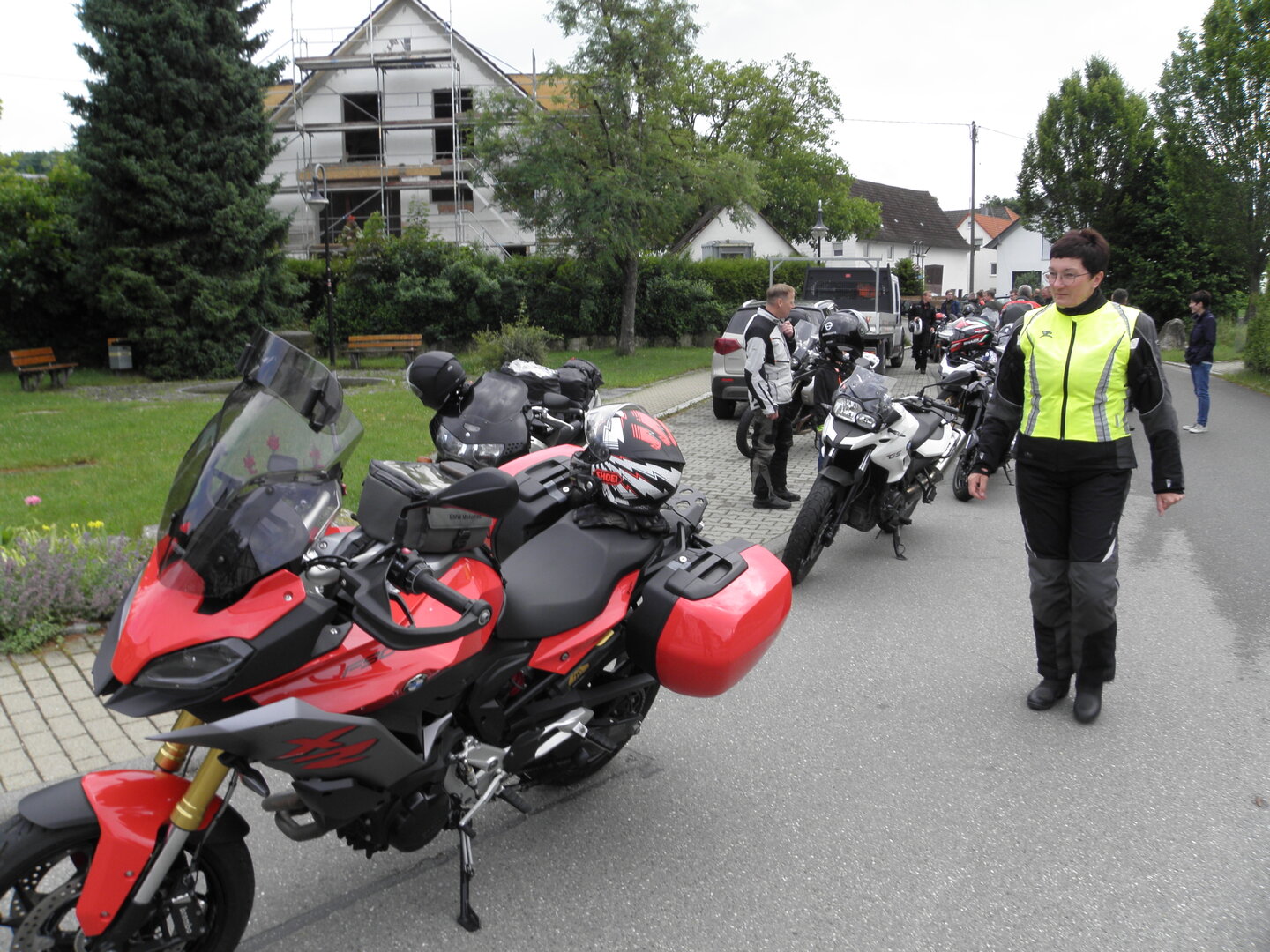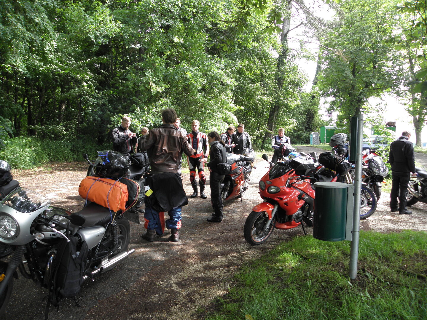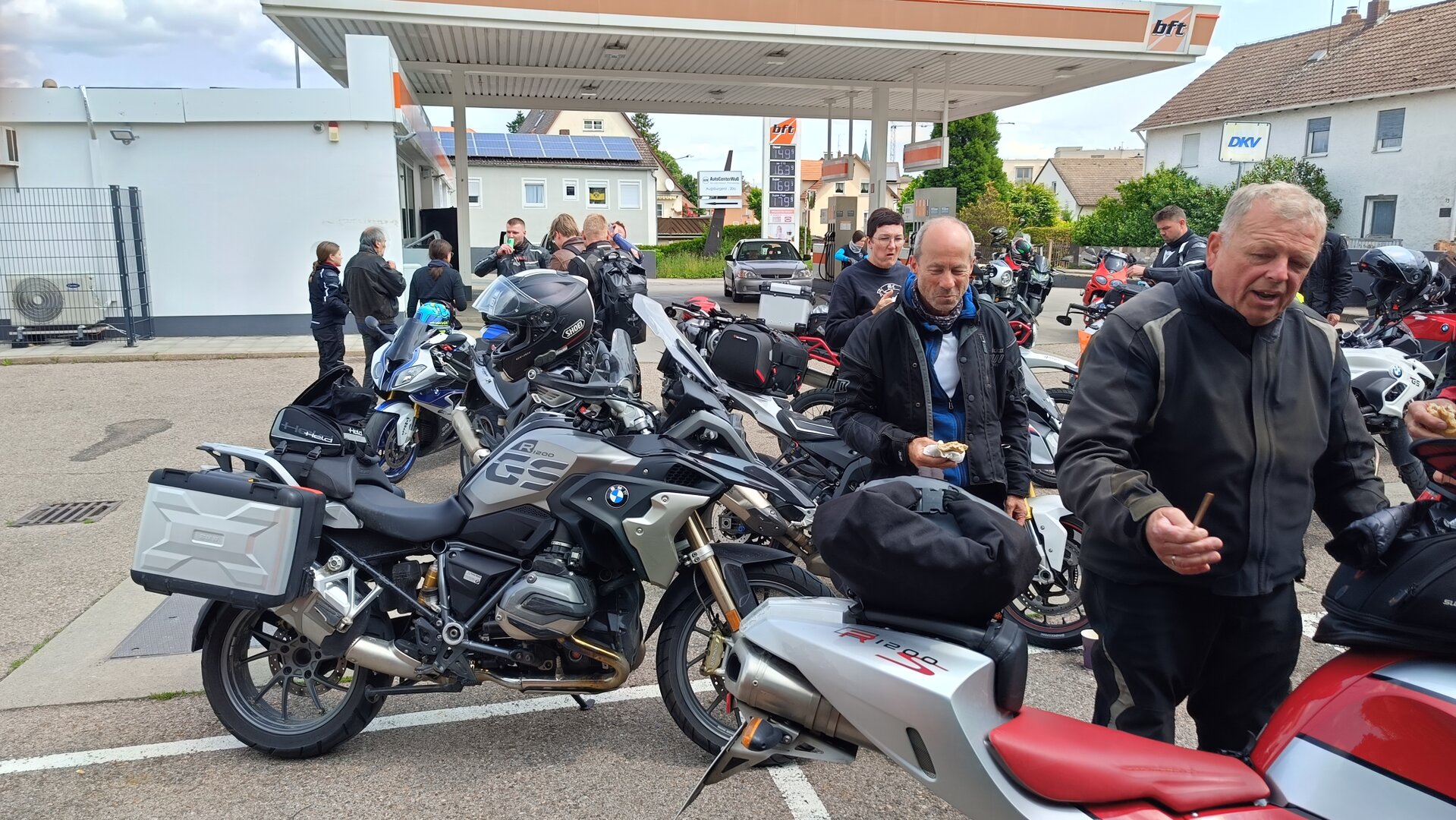 Am 7. Juni gings wieder los es stand die Pfingstausfahrt auf dem Programm. Ziel war dieses mal der Gasthof "Zu den drei Heiligen " in Dietfurt an der Altmühl. Bei durchwachsenem Wetter gings morgens mit 23 Motorräder los. Die Tour ging über Blaubeuren, Dornstadt, Beimerstetten, Heuchlingen, Hermaringen, Sachsenhausen, Dischingen, Amerdingen, Harburg, Flotzheim, nach Pappenheim wo getankt wurde. Dort fing es an zu regnen und die Strecke über Eichtätt, Kinding, Beilngries nach Griesstetten wurde im Regen absolviert. Zum Teil Nass angekommen wurden die Zimmer bezogen, warm geduscht und sich erst einmal ein kühles Blondes gegönnt. Nach einem tollen Essen wollten einige noch auf einFest in der Nähe und organisierte ein Großraumtaxi. Man staunte nicht schlecht als statt dem Taxi ein Reisebus ankam. Mit dem fuhren einige aufs Fest, das ältere Semester blieb im Gasthof und lies es dort ausklingen. Nach reichhaltigem Frühstück und abkühlung in der Altmühl ging es auf zu einer Rundtour Man fuhr über Beratzhausen, Burglengenfeld, Amberg. Kurz vor Amberg mussten wir zwecks Unwetter unterstehen. Von oben trocken gings weiter nach Hirschau, Hahnbach, Kalchsreuth, nach Pruihausen wo im Gasthof Jägerheim Mittag gemacht wurde. Nach gutem Essen fuhr man dann über Neuhaus an der Pegnitz Richtung Happurg. In der Mitte der Strecke wurden wir noch von dem Verkehrszug der Polizei angehalten, Fahrzeugkontrolle usw. stand auf dem Plan. Wir waren wahrscheinlich die einzigen Motorradfahrer an diesem Tag da sonst bei diesem Wetter keiner sein Bike herausholte. Nach einer halben Stunde ging wieder weiter nach Laaber, Mittersthal, Stauferbuch, zurück nach Griesstetten wo man den Abend bei Speis und Trank ausklingen lies. Einige machten noch einen Spaziergang zur Wahlfahrtskirche "zu den drei elend Heiligen". Gestärkt am morgen bei besserem Wetter gings zurück über Beilngries, Weißenburg in Bayern, Wassertrüdingen, Unterschneidheim, Oberkochen, Lonsee, Blaubeuren zurück ins Clubheim wo es noch Kaffee und Kuchen gab. Es waren mal wieder 3 tolle Tage bis nächstes Jahr.