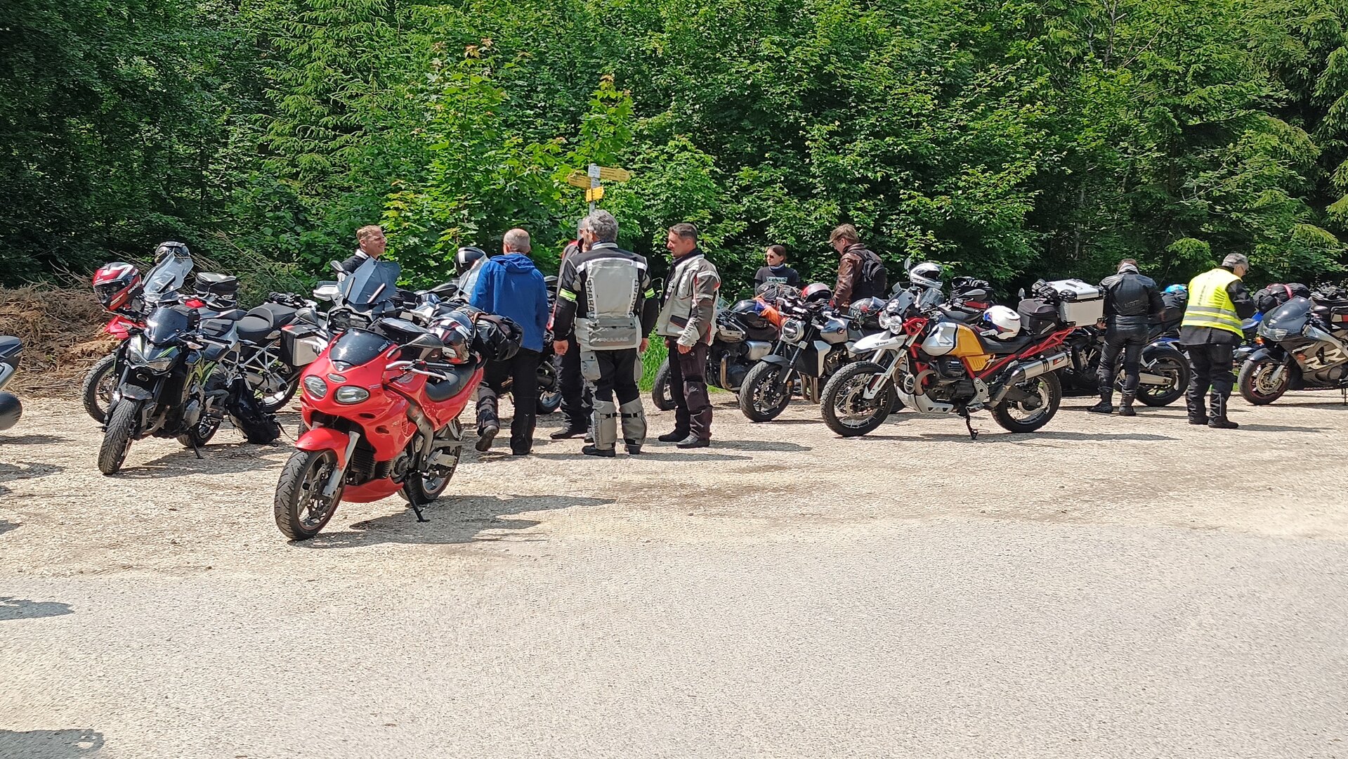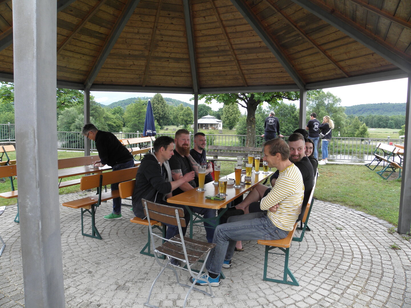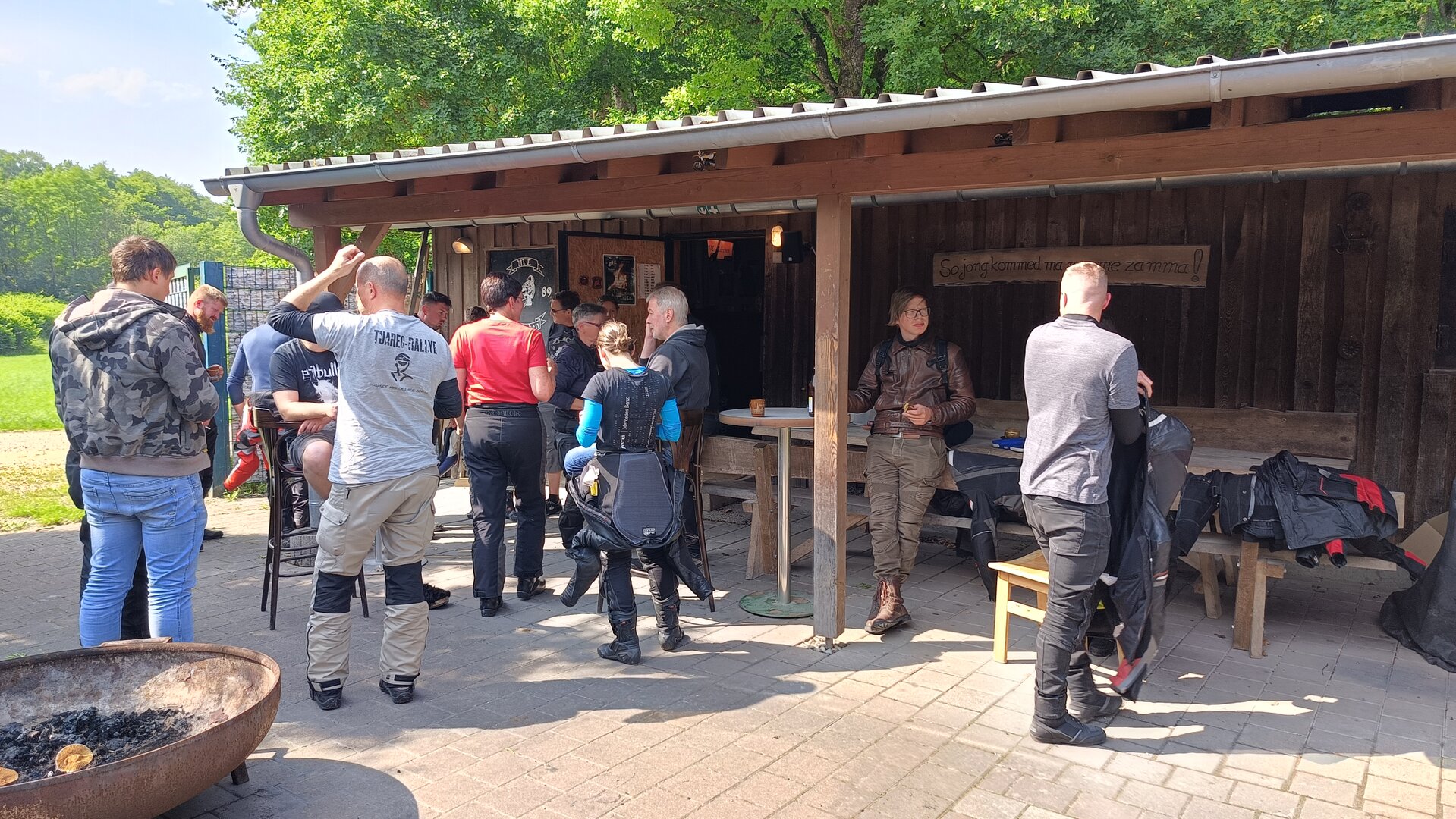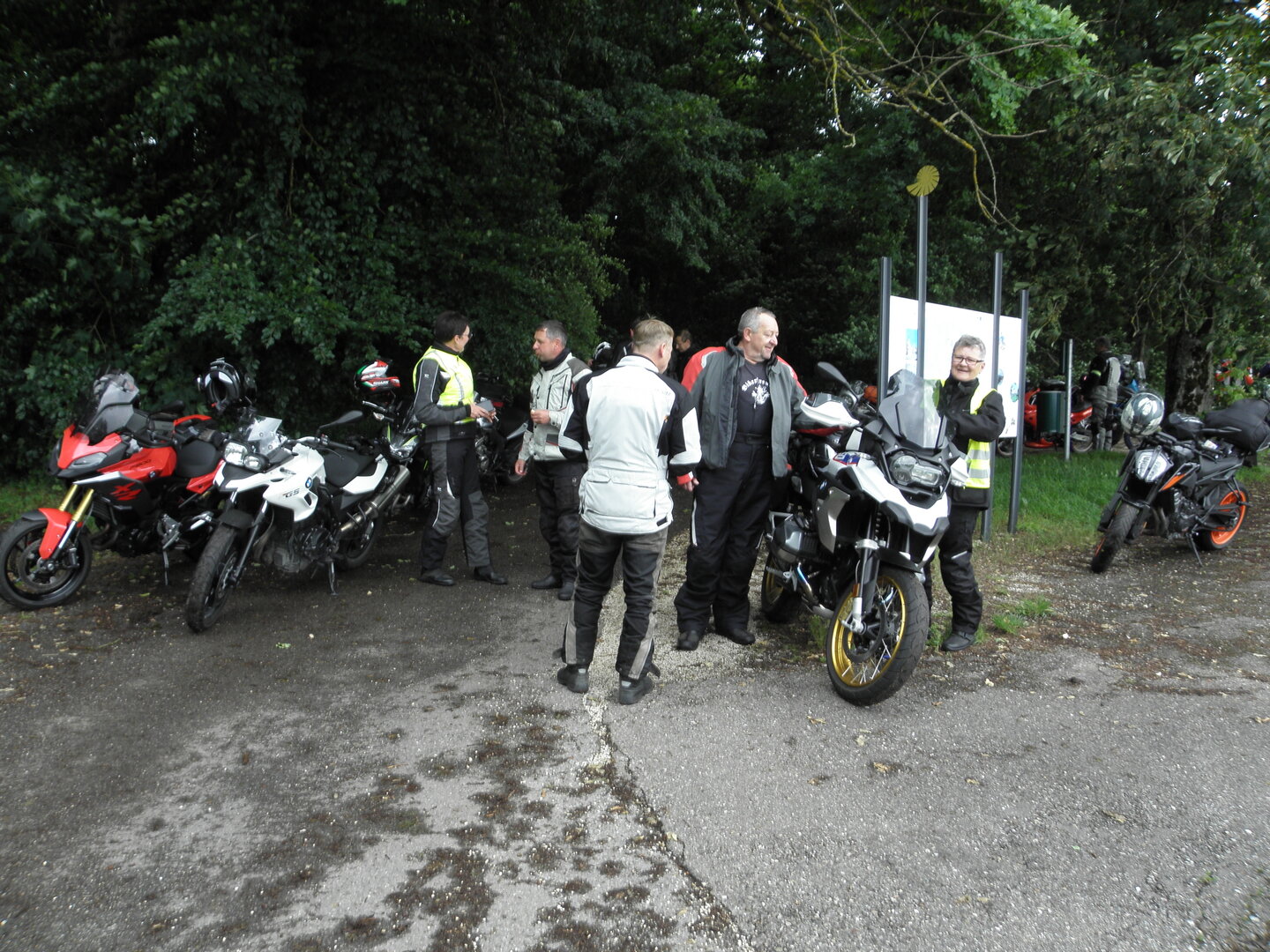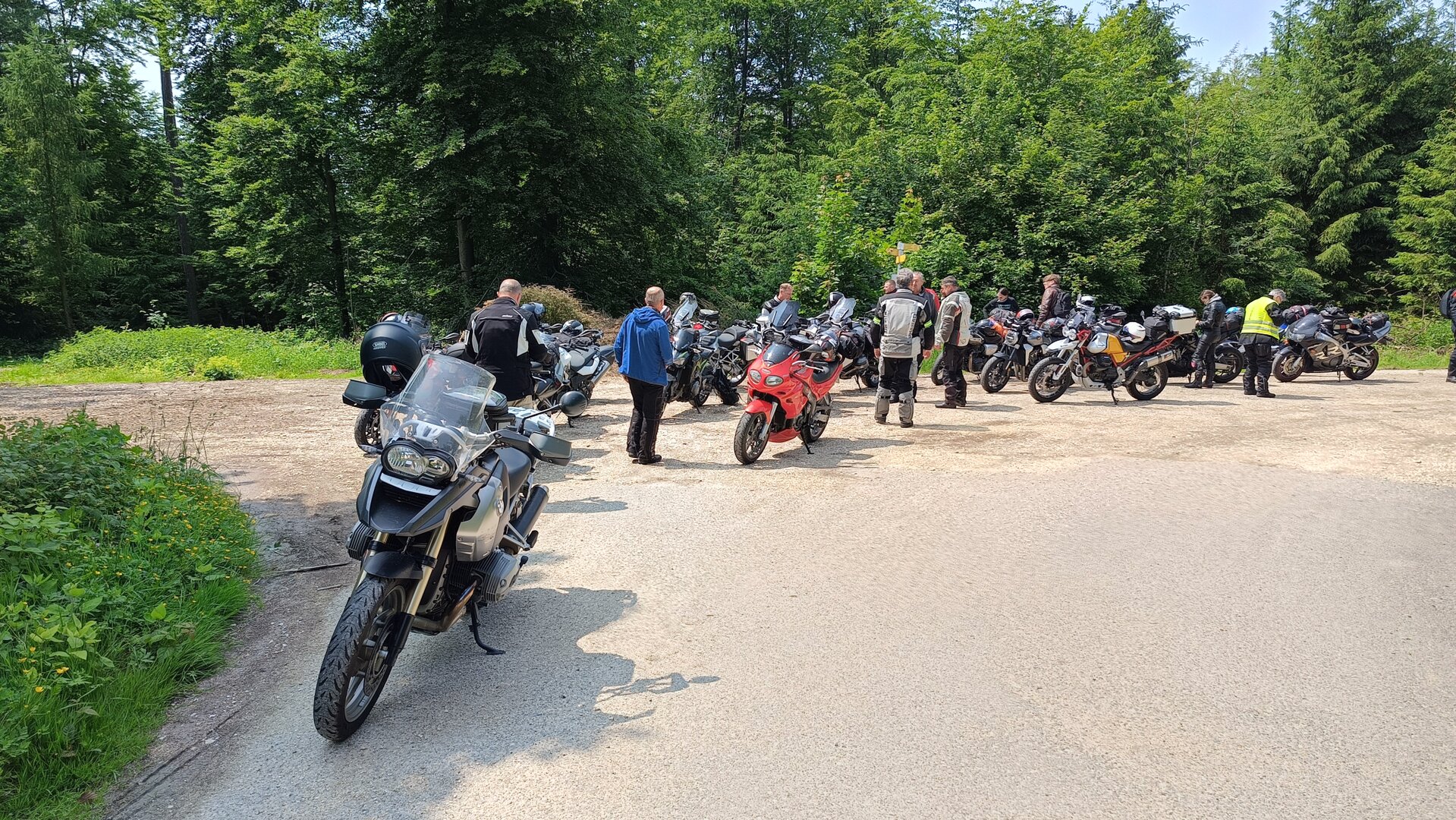 Am 7. Juni gings wieder los es stand die Pfingstausfahrt auf dem Programm. Ziel war dieses mal der Gasthof "Zu den drei Heiligen " in Dietfurt an der Altmühl. Bei durchwachsenem Wetter gings morgens mit 23 Motorräder los. Die Tour ging über Blaubeuren, Dornstadt, Beimerstetten, Heuchlingen, Hermaringen, Sachsenhausen, Dischingen, Amerdingen, Harburg, Flotzheim, nach Pappenheim wo getankt wurde. Dort fing es an zu regnen und die Strecke über Eichtätt, Kinding, Beilngries nach Griesstetten wurde im Regen absolviert. Zum Teil Nass angekommen wurden die Zimmer bezogen, warm geduscht und sich erst einmal ein kühles Blondes gegönnt. Nach einem tollen Essen wollten einige noch auf einFest in der Nähe und organisierte ein Großraumtaxi. Man staunte nicht schlecht als statt dem Taxi ein Reisebus ankam. Mit dem fuhren einige aufs Fest, das ältere Semester blieb im Gasthof und lies es dort ausklingen. Nach reichhaltigem Frühstück und abkühlung in der Altmühl ging es auf zu einer Rundtour Man fuhr über Beratzhausen, Burglengenfeld, Amberg. Kurz vor Amberg mussten wir zwecks Unwetter unterstehen. Von oben trocken gings weiter nach Hirschau, Hahnbach, Kalchsreuth, nach Pruihausen wo im Gasthof Jägerheim Mittag gemacht wurde. Nach gutem Essen fuhr man dann über Neuhaus an der Pegnitz Richtung Happurg. In der Mitte der Strecke wurden wir noch von dem Verkehrszug der Polizei angehalten, Fahrzeugkontrolle usw. stand auf dem Plan. Wir waren wahrscheinlich die einzigen Motorradfahrer an diesem Tag da sonst bei diesem Wetter keiner sein Bike herausholte. Nach einer halben Stunde ging wieder weiter nach Laaber, Mittersthal, Stauferbuch, zurück nach Griesstetten wo man den Abend bei Speis und Trank ausklingen lies. Einige machten noch einen Spaziergang zur Wahlfahrtskirche "zu den drei elend Heiligen". Gestärkt am morgen bei besserem Wetter gings zurück über Beilngries, Weißenburg in Bayern, Wassertrüdingen, Unterschneidheim, Oberkochen, Lonsee, Blaubeuren zurück ins Clubheim wo es noch Kaffee und Kuchen gab. Es waren mal wieder 3 tolle Tage bis nächstes Jahr.